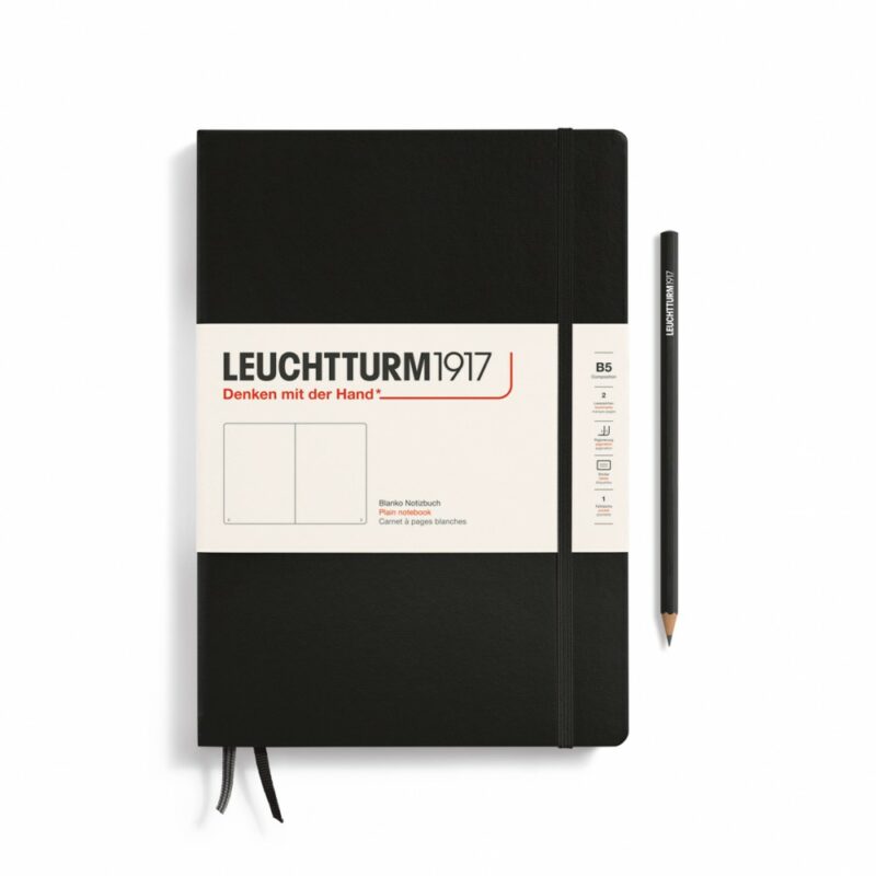 219 számozott oldalával a LEUCHTTURM1917 Composition (B5) keménykötésű notebook csaknem 50%-kal több oldalt és bőséges helyet kínál a jegyzetek, ötletek és piszkozatok számára, mint a hagyományos puhakötésű változat.